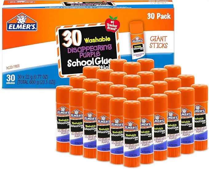 Elmer's Disappearing Purple School Glue Sticks, Washable, 22 Grams, 30 Count
