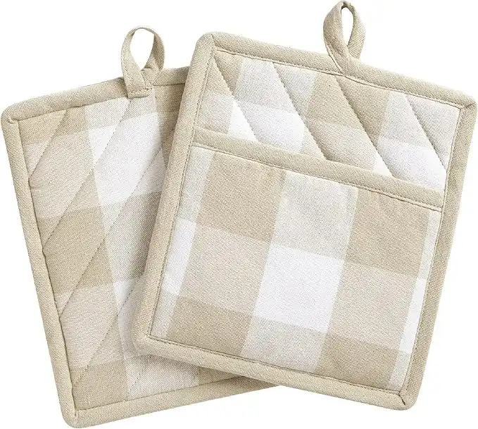 Elrene Home Fashions Farmhouse Living Buffalo Check Pot Holder Pair, 8"x9", Tan/White 2 — Price History & Tracker | DeserTracker