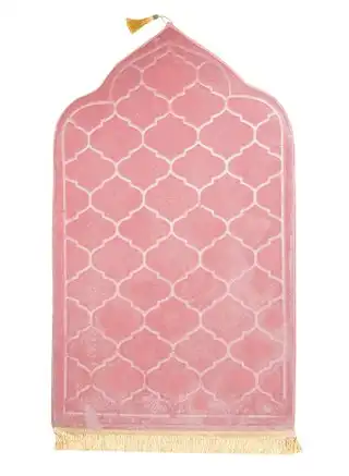 Embossed Prayer Mat Anti-Slip Velvet Top Islamic Prayer Mat Dome Style Thick Padded Sajadah Prayer Rug for Men Women Eid Gift Ramadan Pink 70x110 cm