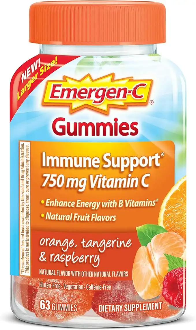 Emergen-C 750mg Vitamin C Gummies for Adults, Immune Support with B Vitamins, Gluten Free, Orange, Tangerine and Raspberry Flavors - 63 Count