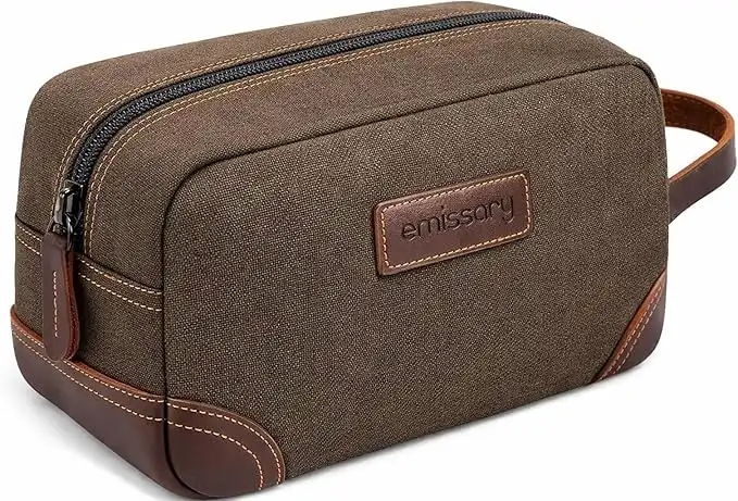 Emissary Men's Toiletry Bag Leather and Canvas Travel Toiletry Bag Dopp Kit for Men Shaving Bag for Travel Accessories — Price History & Tracker | DeserTracker