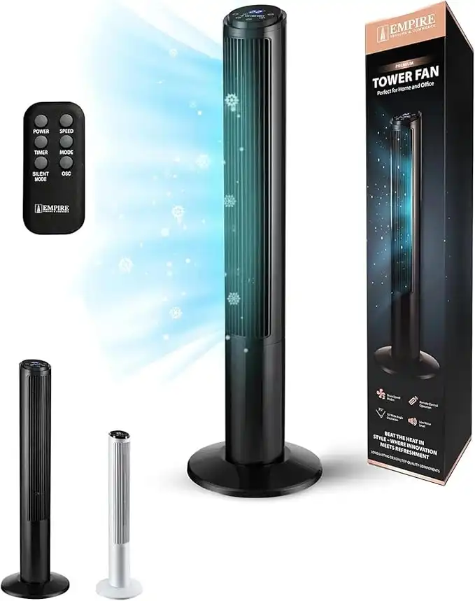 Empire 41 inch Tower Fan with LED Display, Remote Control Fan for Bedroom with Timer Function, 50W Cooling Fan with 3 Speeds, Perfect 75° Oscillating Fan for Home, Living Room & Office (Black)