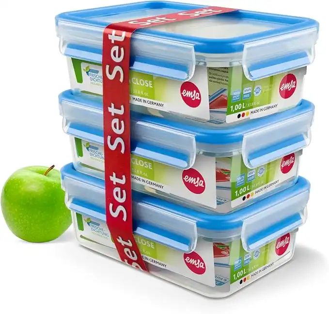 Emsa 508558 Clip & Close 3-piece set of food storage containers, 1 litre, transparent/blue — Price History & Tracker | DeserTracker