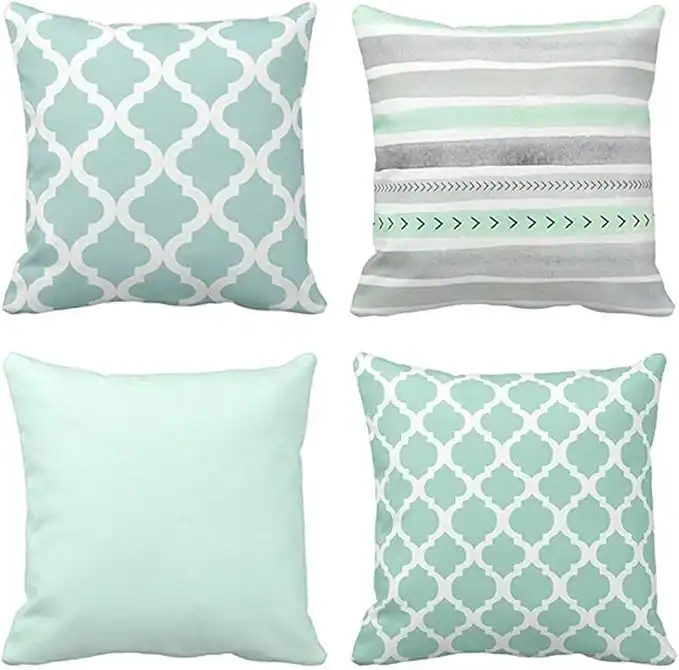 amazon.aeEmvency Set of 4 Throw Pillow Covers Mint Moroccan Green Quatrefoil Gray Watercolour Stripes Arrows Generic Solid Decorative Bedroom Pillow Cases Home Decor Square 16x16 Inches Pillowcases