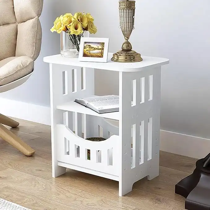 amazon.comEnd Table with Storage Shelf Basket, Small White Narrow Bedside Table, Modern Slim Coffee Tables Small Spaces, White Nightstand, Sofa Table for Living Room, Bedroom, Bathroom, Office Furniture.