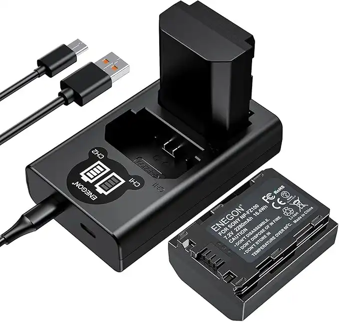 ENEGON NP-FZ100 battery 2 Pack 2280mAh and Fast Dual USB Charger with LCD Screen, Compatible with Sony ZV-E10II A9III A7CII ZV-E1 A7III A7IV FX3 FX30 A6700 A1 A7C A7CR A7RIV A7RV A7SIII A9II
