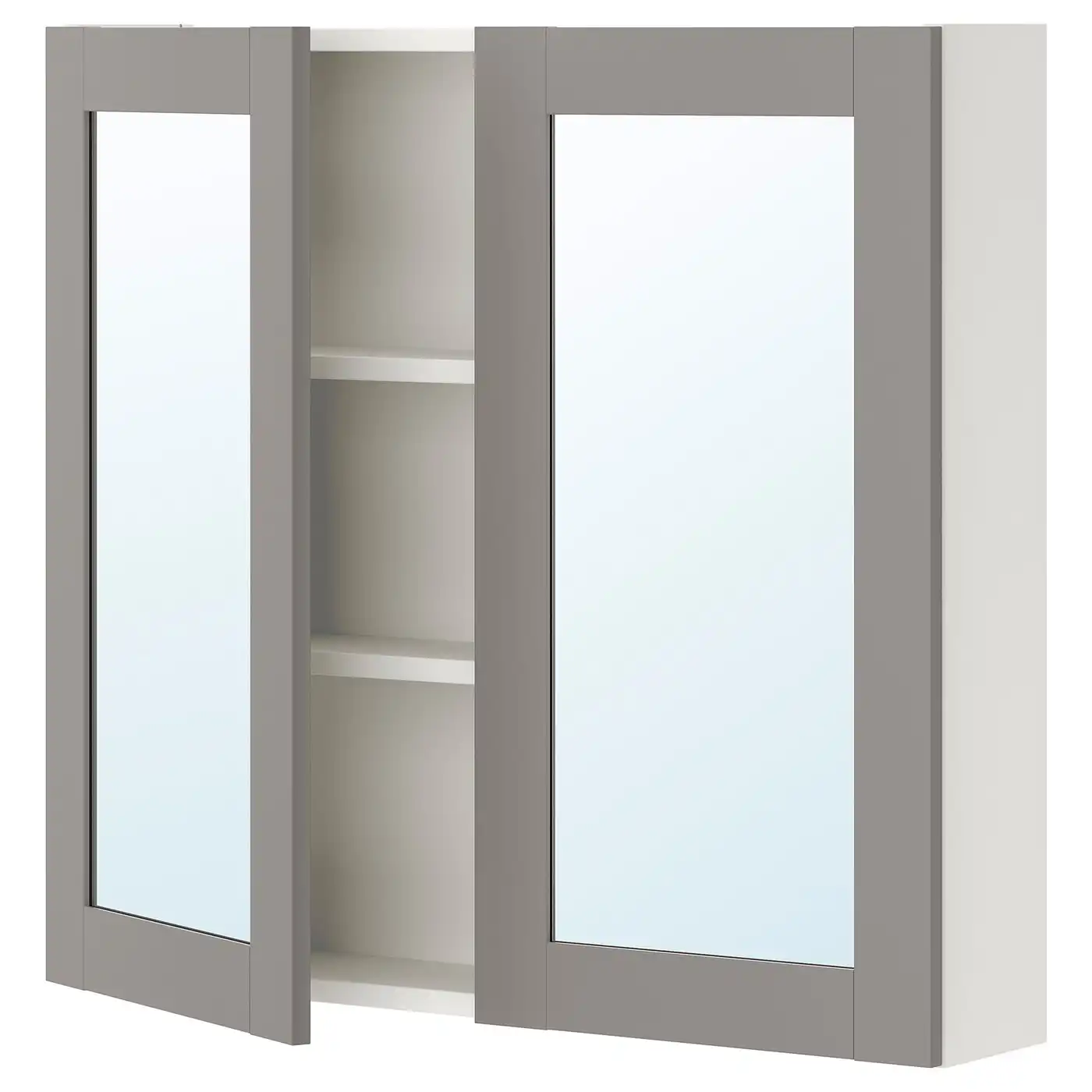 ENHET Mirror cabinet with 2 doors - white/grey frame 80x17x75 cm