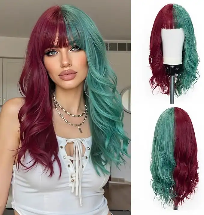 Esmee 22 Inches Women Synthetic Wigs Long Wavy Red/Green with Fluffy Air Bangs Light Cosplay Halloween Party Wigs — Price History & Tracker | DeserTracker