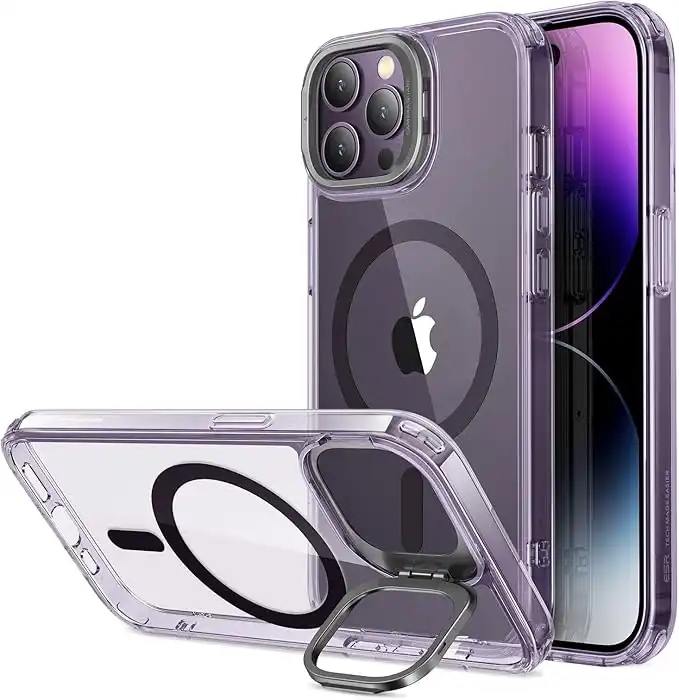 amazon.aeESR for iPhone 14 Pro Max Case, Compatible with MagSafe, Built-in Camera Ring Stand, Military-Grade Protection, Magnetic Case for iPhone 14 Pro Max, Classic Kickstand Case (HaloLock), Clear Purple