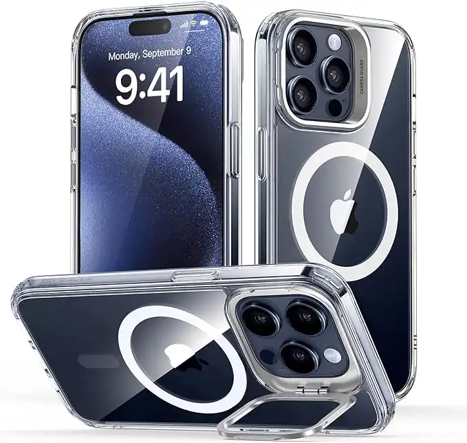 ESR for iPhone 15 Pro Max Case Cover, Compatible with MagSafe, Built-in Stash Stand Phone Case, Military-Grade Protective Case, Scratch-Resistant Back Cover, Classic Series, Clear