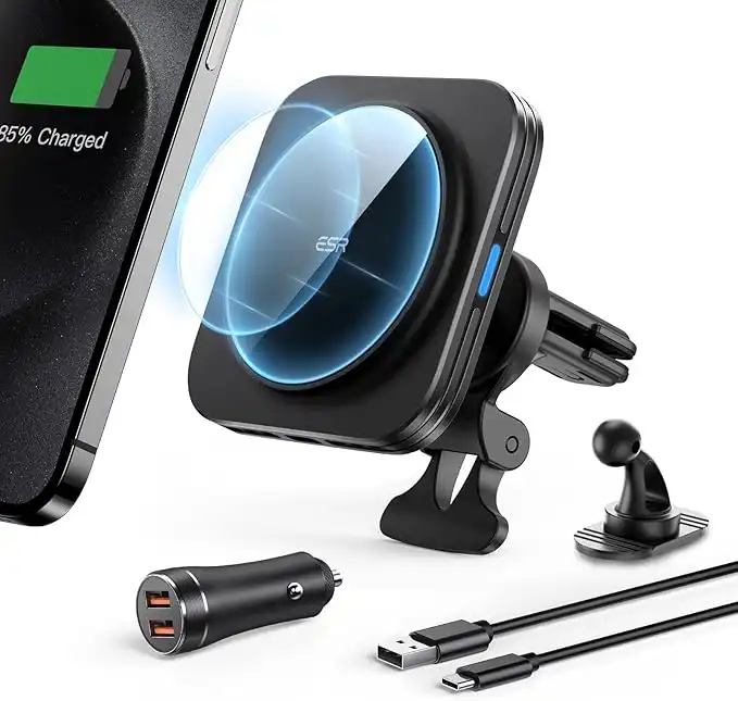 amazon.aeESR for MagSafe Car Mount Charger, 15W Magnetic Wireless Car Charger, for MagSafe Phone Charging, Air Vent Phone Holder for iPhone 17/16/15/14/13, Galaxy S25/S25 Ultra, with 36W QC 3.0 Fast Charging