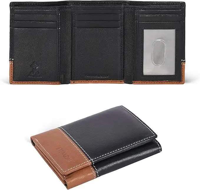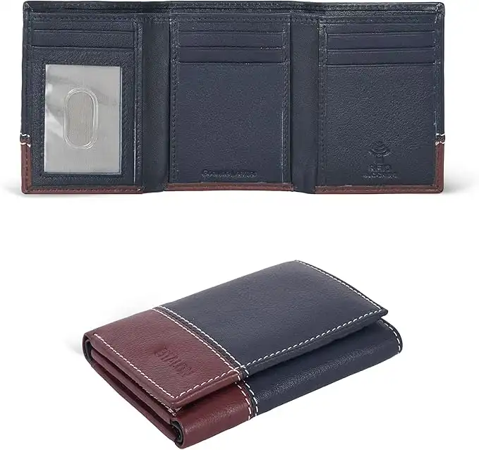 amazon.aeESTALON Real Leather Trifold Wallet For Men-RFID Slim Tri Fold Wallets Minimalist 3 fold Credit Card Holder ID Window (Cognac/Navy)