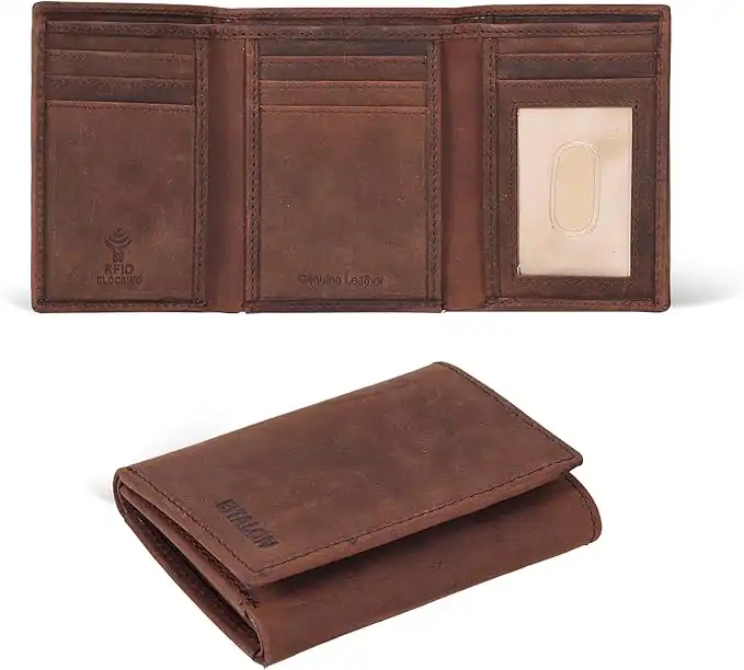 amazon.aeESTALON Real Leather Trifold Wallet For Men-RFID Slim Tri Fold Wallets Minimalist 3 fold Credit Card Holder ID Window (Brown)