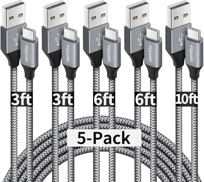 amazon.aeetguuds USB C Cable, 5-Pack (3/3/6/6/10 ft), USB to USB C Cable Fast Charging Type C Charger Cord for iPhone 15, for Samsung Galaxy S24 S23 S22 S21 S20 A25 A54 A15 A14, Note, Flip, Pixel, Moto