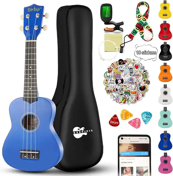Everjoys Soprano 21-inch Ukulele Beginner Kit