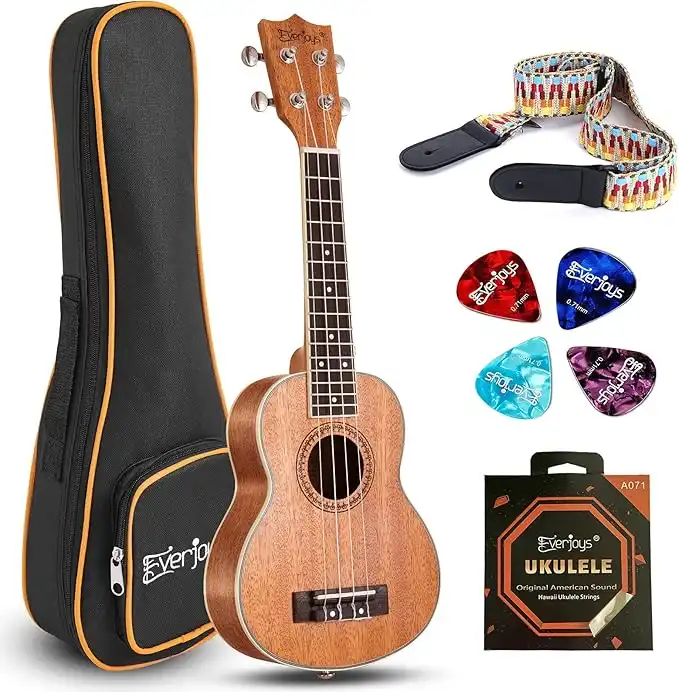 Everjoys Soprano Ukulele Starter Kit - Professional 21 inch Mahogany ukulele w/Free Online Lesson Case Strap Digital Tuner Aquila Strings Ukalalee Yukalalee (Lifgt Mahogany) — Price History & Tracker | DeserTracker