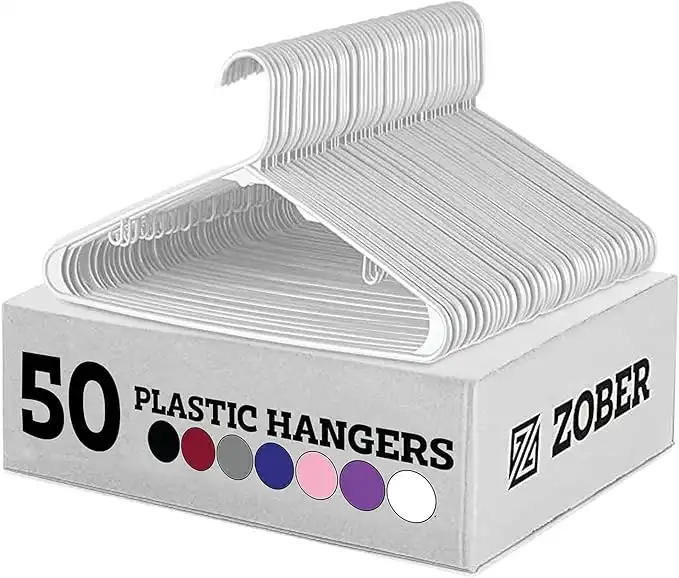 amazon.aeEveryday Standard White Plastic Hangers - Pack of 60 - with Strap Hooks 16.5 Inch, Durable & Slim Space Saving Tubular Clothes Hangers, For Pants, Shirt, Dress, Underwear, Bra Etc. Hangs up to 5.5 lbs