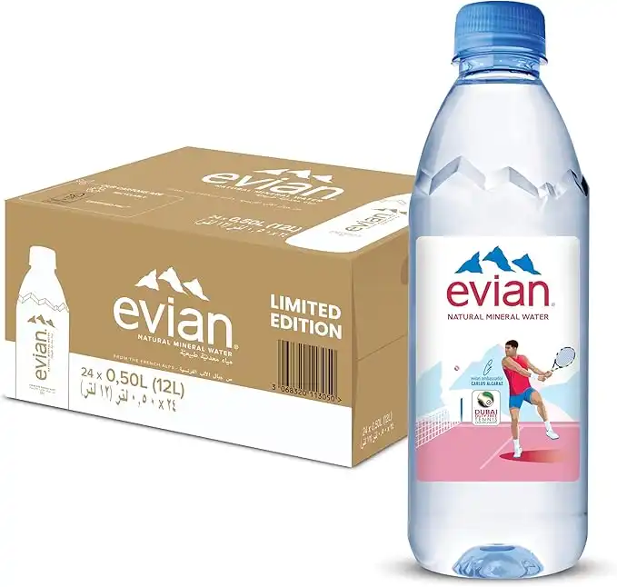 Evian Mineral Water, Naturally Filtered Drinking Water, 500ml Bottled Water Crafted by Nature, Case of 24 x 500 ML Evian Water Bottles — Price History & Tracker | DeserTracker