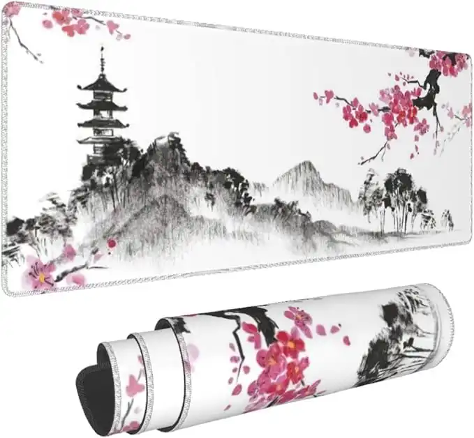 Excefore Gaming Mouse Pad Black and White Plum Bossom Cherry Blossom, Extended Large Mouse Mat Desk Pad, Stitched Edges Mousepad, Long Non-Slip Rubber Base Mice Pad (31.5x11.8x0.12 Inch, A1)