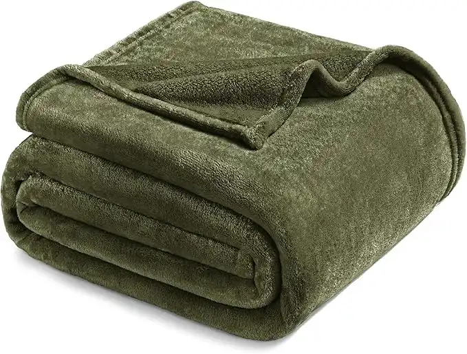 Exclusivo Mezcla Cuddly Fleece Blanket, Bed Throw, Super Soft and Warm Sofa/Living Room Blanket for All Seasons, Plush and Lightweight, 230 x 270 cm, Olive Green