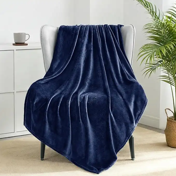Exclusivo Mezcla Extra Large Fleece Throw Blanket for Couch, Sofa, 300GSM Super Soft and Warm Blankets, Navy Blue Throw All Season Use, Cozy, Plush, Lightweight, 50x70 Inches