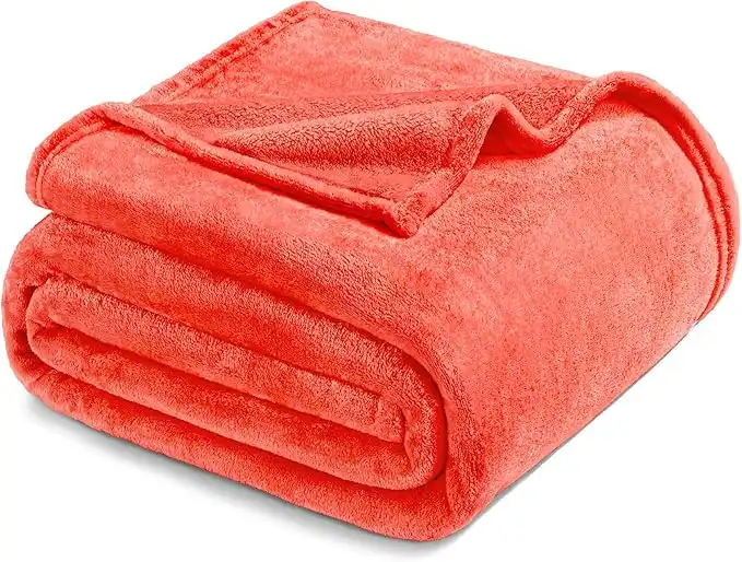 Exclusivo Mezcla Fleece Blanket King Size for Bed, Super Soft and Warm, All Season Use, Cozy, Plush, Lightweight, 90x104 Inches, Coral Orange