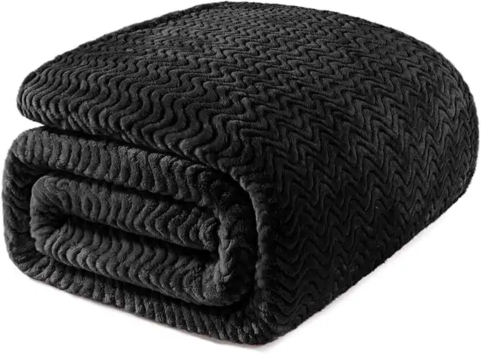 amazon.aeExclusivo Mezcla Queen Size Flannel Fleece Blanket, 90x90 Inches Soft Jacquard Weave Wave Pattern Velvet Plush Blanket for Bed, Cozy, Warm, Lightweight and Decorative for Winter, Black Blanket