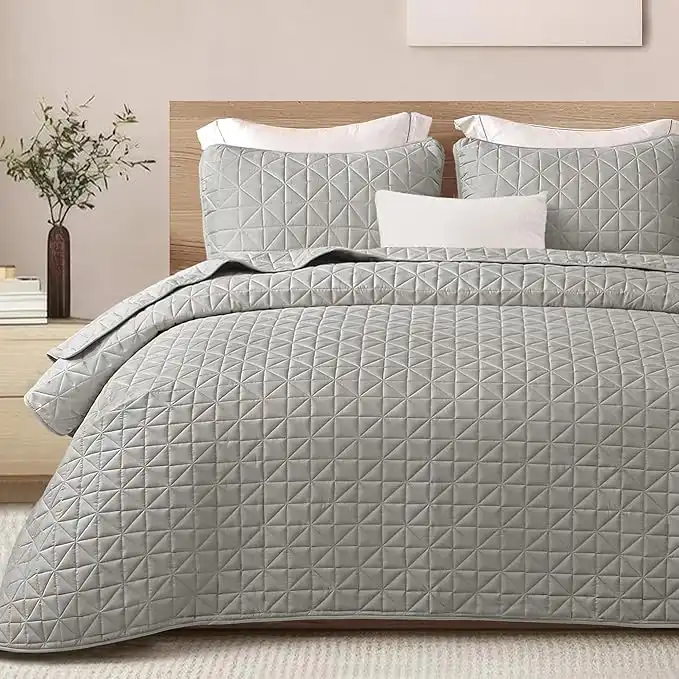 Exclusivo Mezcla Quilts Twin Size Bedding Set with Stitched Grid Pattern, Lightweight Summer Light Grey Bedspreads Coverlets Bed Cover for All Seasons (1 Quilt and 1 Pillow Sham) — Price History & Tracker | DeserTracker
