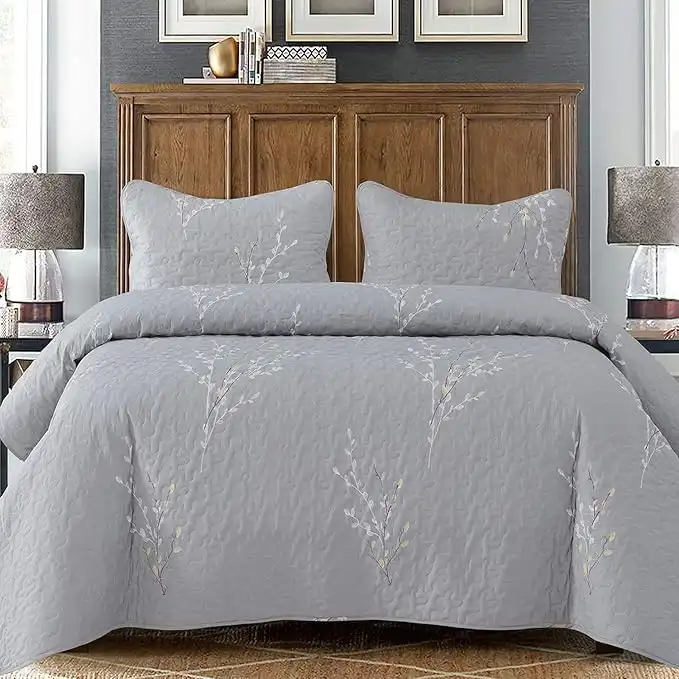 Exclusivo Mezcla Reversible Floral Quilt Set Full Queen Size, 3 Piece Soft Lightweight Flower Pattern Printed Grey Bedspreads Coverlet Bedding Set for All Seasons — Price History & Tracker | DeserTracker