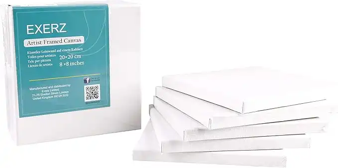 Exerz 20X20Cm Framed Canvas 5Pk - 1.7Cm Pre-Stretched Canvas Artist Blank Square/ 280Gsm 100% Cotton/Triple Primed/Acid Free/Medium Grain/Professional Acrylic Paint, Oil Paint — Price History & Tracker | DeserTracker