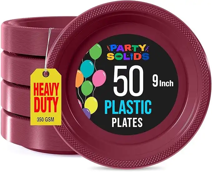 Exquisite Party Solids Burgundy Plastic Plates For Party Supplies 9" Burgundy Disposable Plates Heavy Duty 50 Pcs Plastic Dinnerware Sets Heavy Duty 350 GSM Disposable Dinnerware Set — Price History & Tracker | DeserTracker