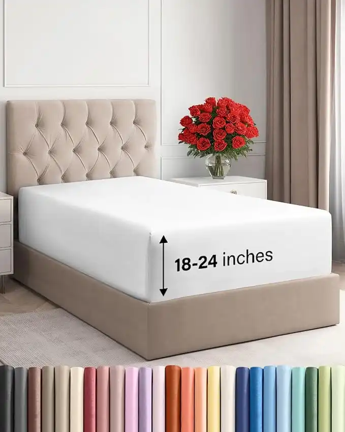 amazon.aeExtra Deep Twin Fitted Sheet - Hotel Luxury Single Fitted Sheet Only - Easily Fits 18 inch to 24 inch Mattress - Ultra Soft, Wrinkle Free w/Extra Deep Pockets - Easy-Care, Breathable & Comfy - White