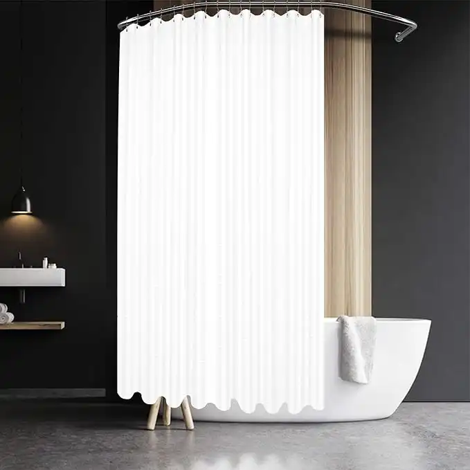 amazon.aeExtra Wide Fabric Shower Curtain 108 x 72 inch, Waffle Weave, Hotel Luxury Spa, Water Repellent, Washable, Spa, 230 GSM Heavy Duty, White Pique Pattern Decorative Bathroom Curtain, 18 Holes