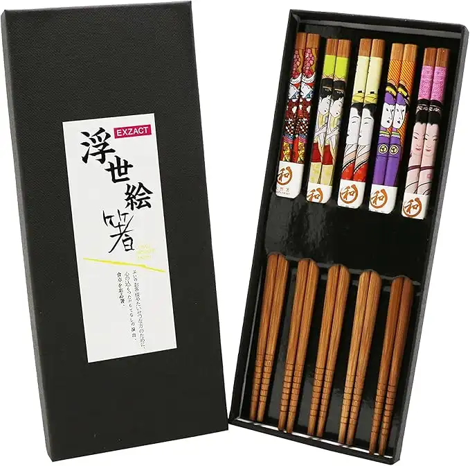 amazon.aeExzact Chopsticks Gift Set - 5 Pairs Of Reusable Natural Bamboo Chopsticks In A Beautiful Black Handmade Box - Decorated Japanese Style