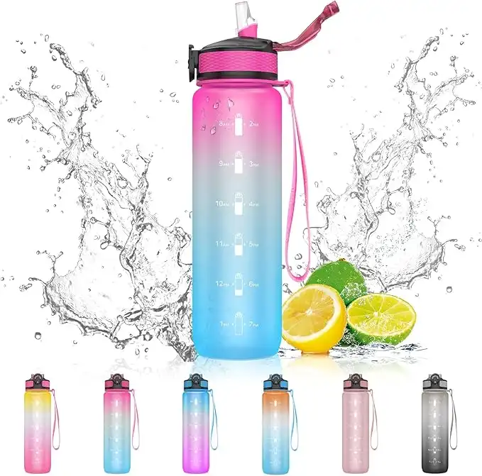 EYQ 32 oz Water Bottle with Time Marker, Carry Strap, Leak-Proof Tritan BPA-Free, Ensure You Drink Enough Water for Fitness, Gym, Camping, Outdoor Sports (Fuschia/Green Gradient) — Price History & Tracker | DeserTracker