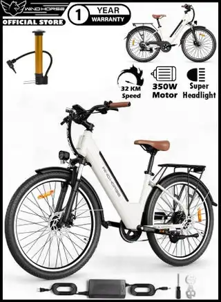 F2 Electric Bike for Adults 350W Motor, 36V 13Ah Removable Battery, 32KM/H Max Speed, 40–80KM Range, Carbon Alloy Frame, 26 Inches Tires, Shimano 7-Speed, Dual Disc Brakes, Front Suspension, 3 Riding Modes