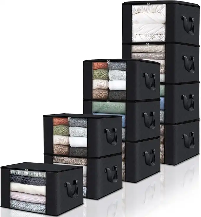 Fab totes 10 Pack Clothes Storage, Foldable Thick Fabric Blanket Storage Bags, Containers for Organizing Bedroom, Closet, Clothing, Comforter,Closet Organization with Handle,Black — Price History & Tracker | DeserTracker