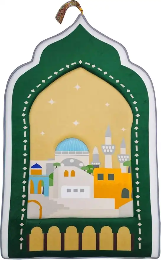 amazon.comFabienne Childrens Prayer Mat 60x95cm Memory Foam Prayer Mat for Kids Dome Style with Colorful 3D Design and Tassel Nonslip Lightweight Salah Mat Kids Gift Mat (Green-Beige)