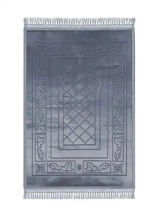 noon.comIslamic Prayer Mat 70x110cm Smooth Velvet Texture Anti-Slip Premium Prayer Rug Compact Size Musalla for Men Women Kids Eid Gift Ramadan Carpet Grey
