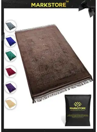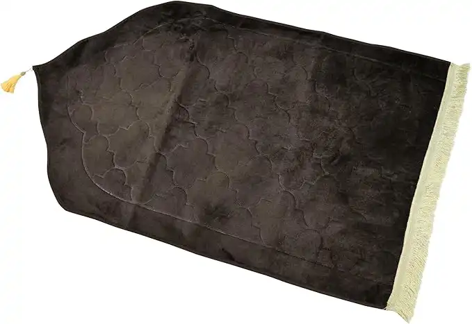 noon.comIslamic Prayer Mat 70x110cm Smooth Velvet Texture Anti-Slip Premium Prayer Rug Compact Size Musalla for Men Women Kids Eid Gift Ramadan Carpet Dark Brown Random Print