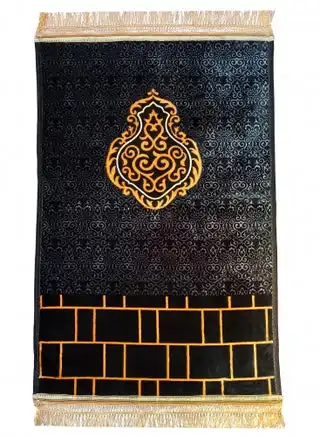 noon.comIslamic Prayer Mat Printed 70x110cm Smooth Velvet Texture Anti-Slip Premium Prayer Rug Compact Size Musalla for Men Women Kids Eid Gift Ramadan Carpet Black