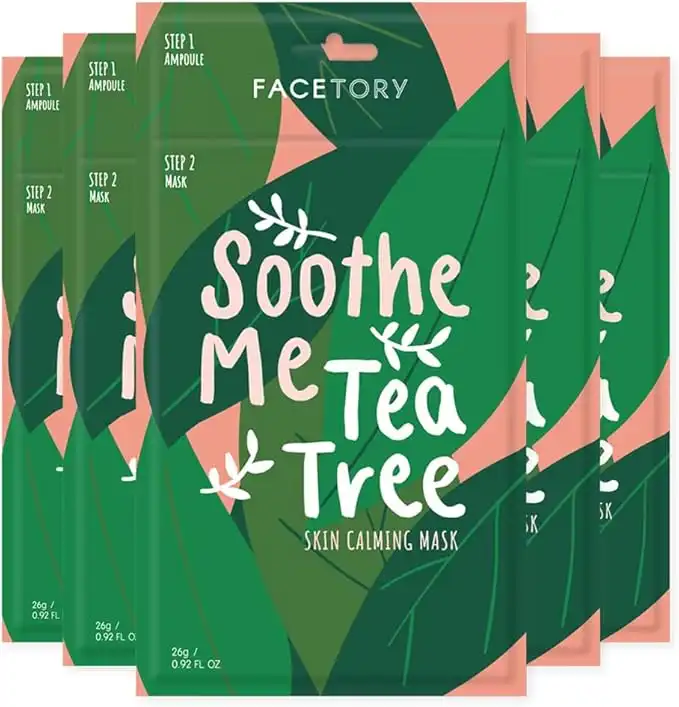 FACETORY Soothe Me Tea Tree 2-Step Sheet Mask with Tea Tree Oil and Chamomile Extract - For Acne Prone Skin - Soothing, Hydrating, Calming, and Balancing (Pack of 5) — Price History & Tracker | DeserTracker