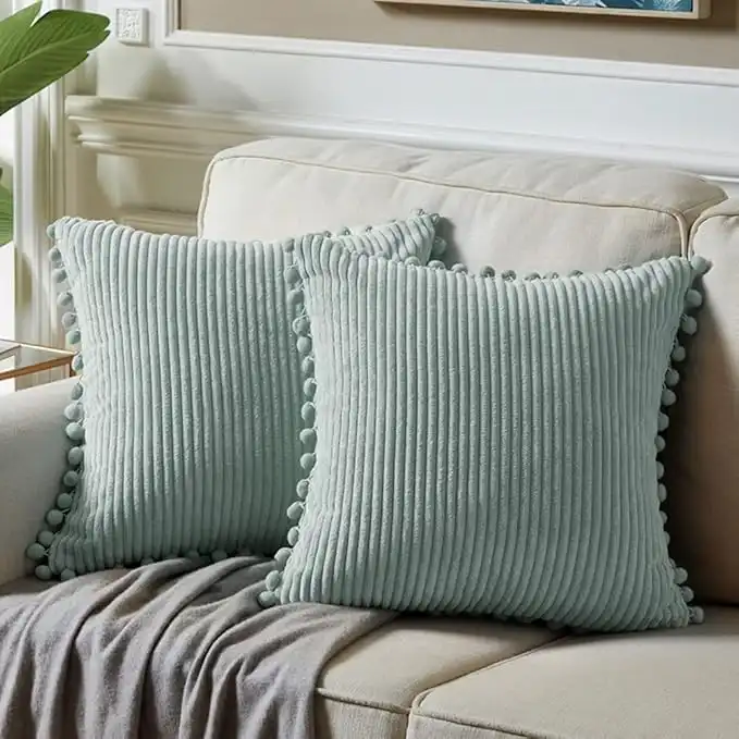 amazon.aeFancy Homi Pack of 2 Farmhouse Decorative Throw Pillow Covers with Pom-poms, Soft Corduroy Solid Square Cushion Cases Set for Couch Sofa Bedroom Car Living Room (18x18 Inch/45x45 cm, Grey Blue)
