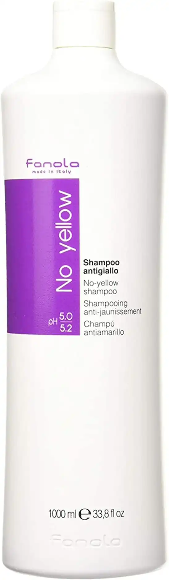 Fanola No Yellow Shampoo - Professional Anti-Yellow Toner for Blonde, Grey & Bleached Hair, Neutralizes Brassiness, Sulfate-Free, Made in Italy - (33.8 fl oz)