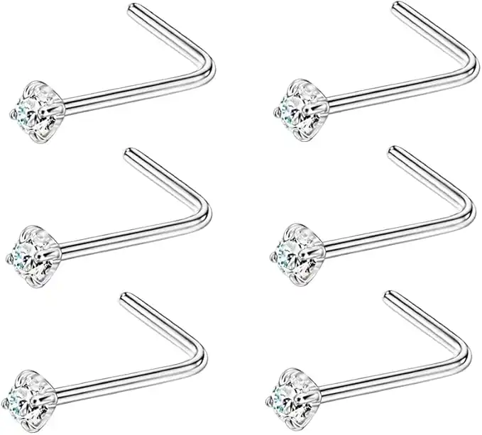 FANSING Nose Studs for Women Men L Shaped Nose Rings Surgical Steel Nostril Piercing Jewelry with Cubic Zirconia End — Price History & Tracker | DeserTracker