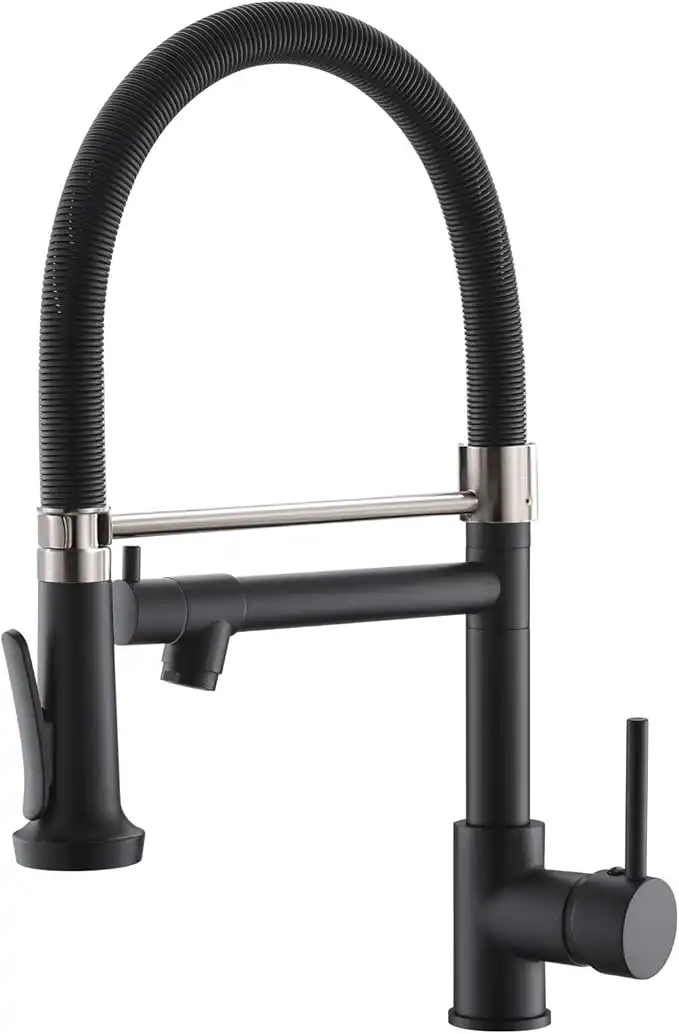 Fapully Pull Down Kitchen Faucet with Sprayer, Commercial Black Spring Kitchen Sink Faucet with Brushed Nickel — Price History & Tracker | DeserTracker