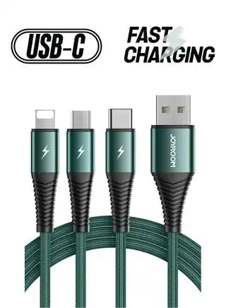 Fast Charging Braided 3 In 1 USB Cable Green