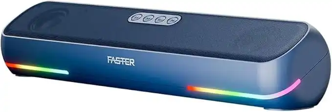 Faster Ryzo Z16 Soundbar - 16W Wireless Sound Bar 415x133x100mm Bluetooth 5.3 EDR 5H Playback RGB Light TWS - Portable Speaker USB AUX, TF Card - Hands-Free Call 360° Surround Sound (Navy Blue)