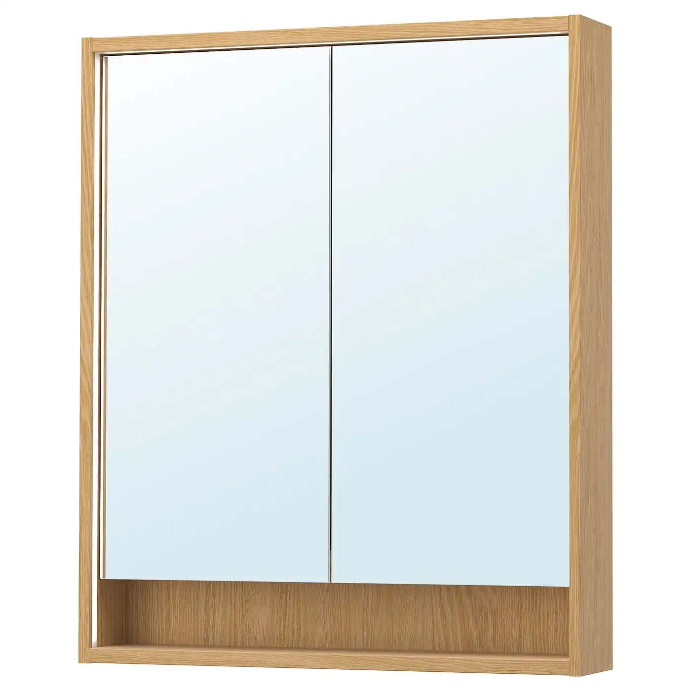 FAXÄLVEN Mirror cabinet w built-in lighting - oak effect 80x15x95 cm
