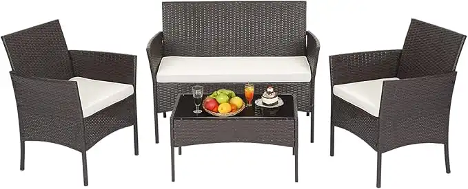 FDW Patio Furniture Set 4 Pieces Outdoor Rattan Chair Wicker Sofa Garden Conversation Bistro Sets for Yard (Brown) — Price History & Tracker | DeserTracker